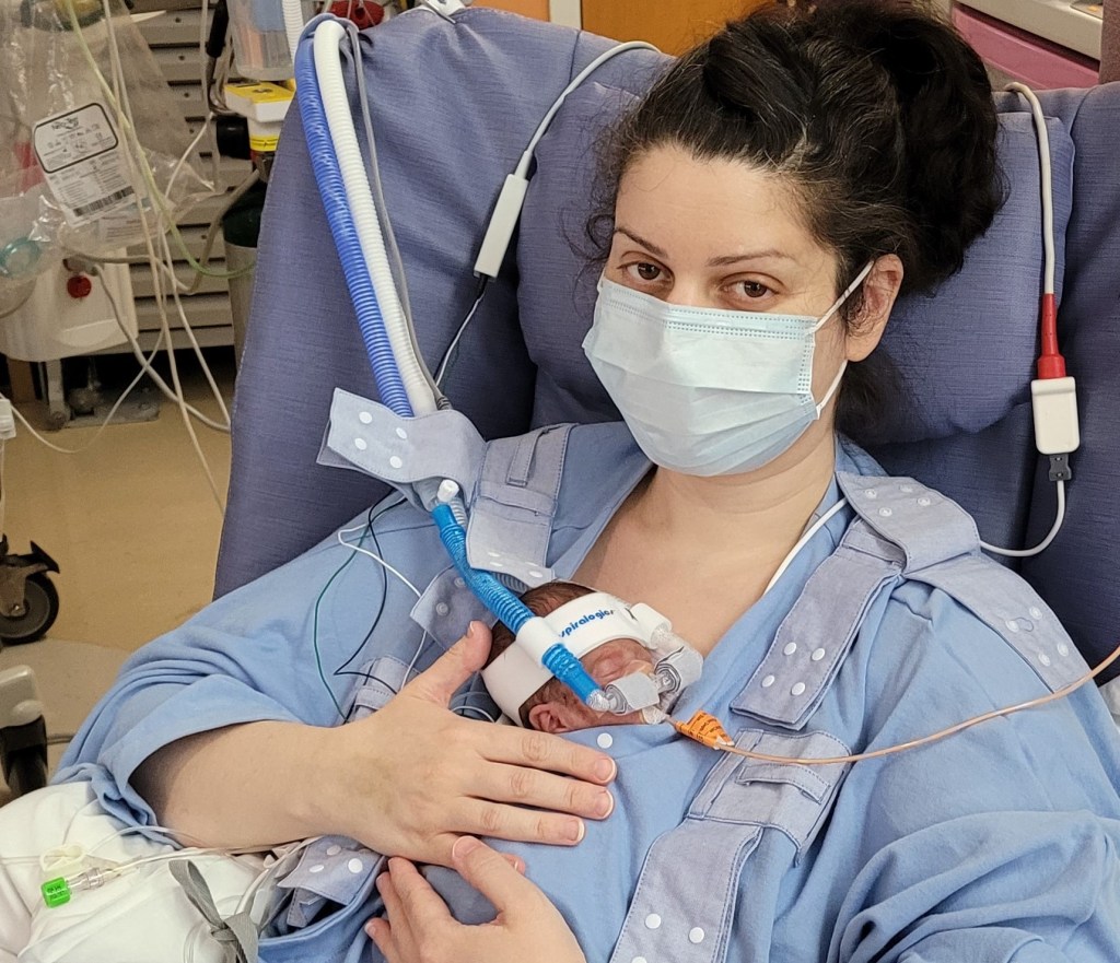 - Baby’s lines and breathing tubes are more secure when using the Kangarobe™.